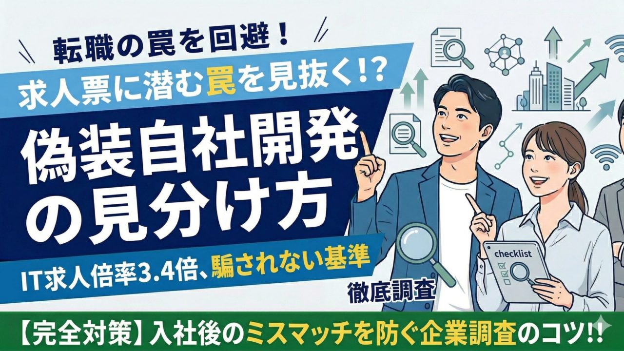 いわゆる「偽装自社開発」とは、求人票では自社開発を謳いながら、実態は客先常駐やSES事業が中心の企業を指します。
