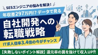 この記事では、SESと自社開発の年収差・働き方の違いを公的データと転職市場の調査結果をもとに解説します。結論から言えば、SESから自社開発への転職で年収が大きく上がる可能性は十分にあり、IT求人倍率3.4倍という売り手市場の今が動きやすいタイミングです。